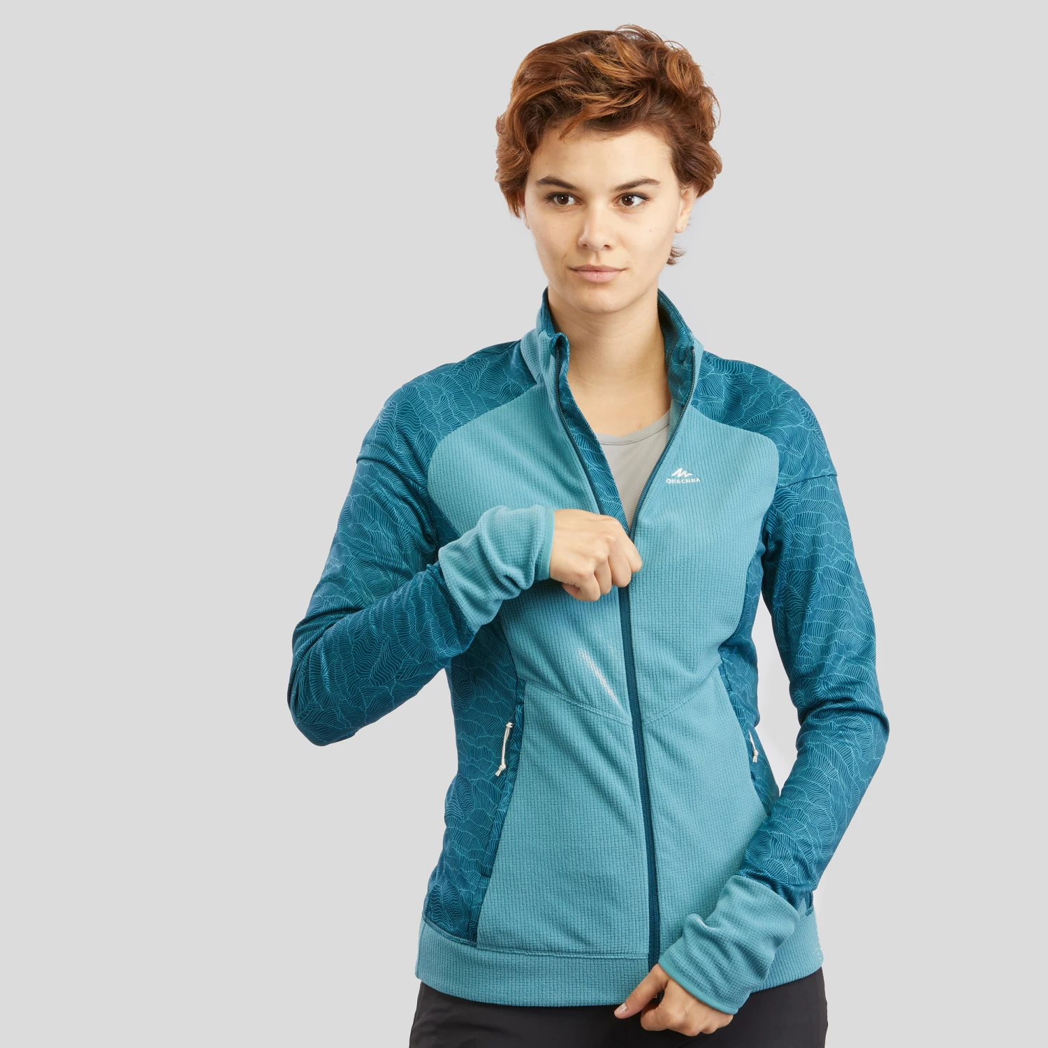 At the foot of Mont Blanc, our team of hikers designed this warm and extremely breathable fleece jacket suited to regular hikers.Walkers will particularly appreciate its longline cut that covers the lower back, its soft stand-up collar, and its cuffs that cover the hands. Microgrid material at the chest and back.